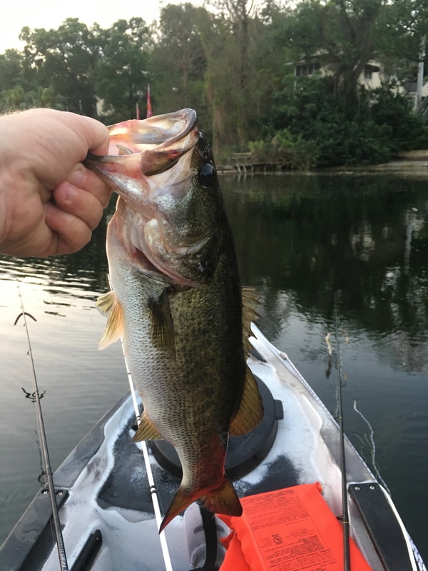Today was the last day so I decided to get up before light and find some water. There was a pull towards the coast, but I opted out of the wind and stayed in Orlando. I have been hitting some of the down town lakes where I use to walk the shore line as a kid. I love my kayak, because after throwing it on the C-Tug and taking a short walk across the field, I was in Lake Highland and headed to parts of the lake I could not reach before. It was early and the third cast ended in a fight with a really strong three pound-er, but then I tangled all my lines and ended up cutting and retying three rods in the dark. What a waste of time. It didn't take long to find fish again though.